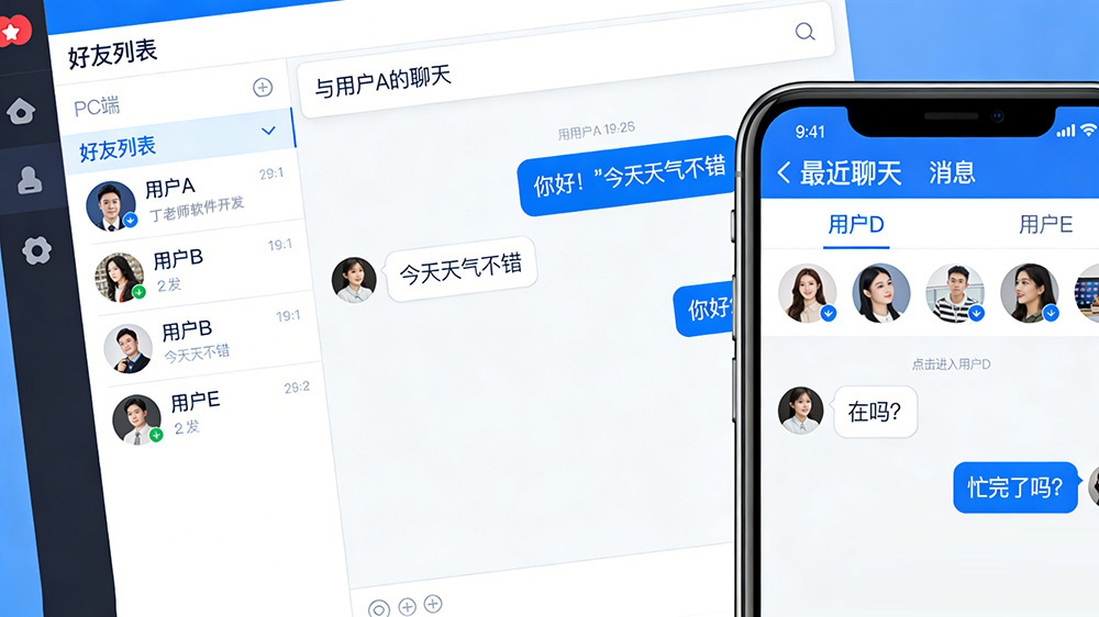 IM即时通讯聊天软件定制开发,支持PC、手机APP、小程序等终端,可与企业内部系统、第三方系统集成。